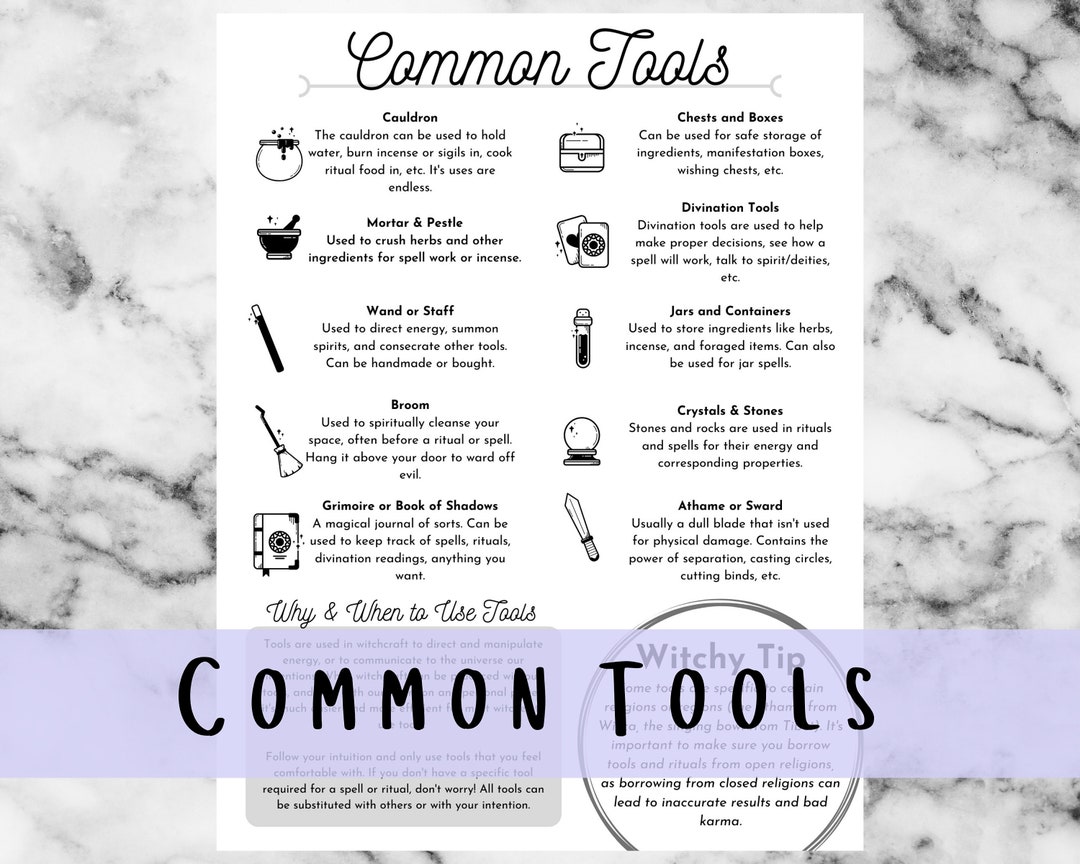 Common Tools Of Witchcraft Printable Grimoire Page Etsy